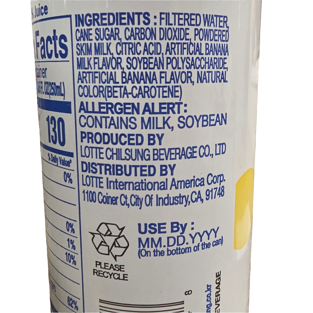 Lotte Milkis Banana Carbonated Drink 8.45 fl oz (250 ml)