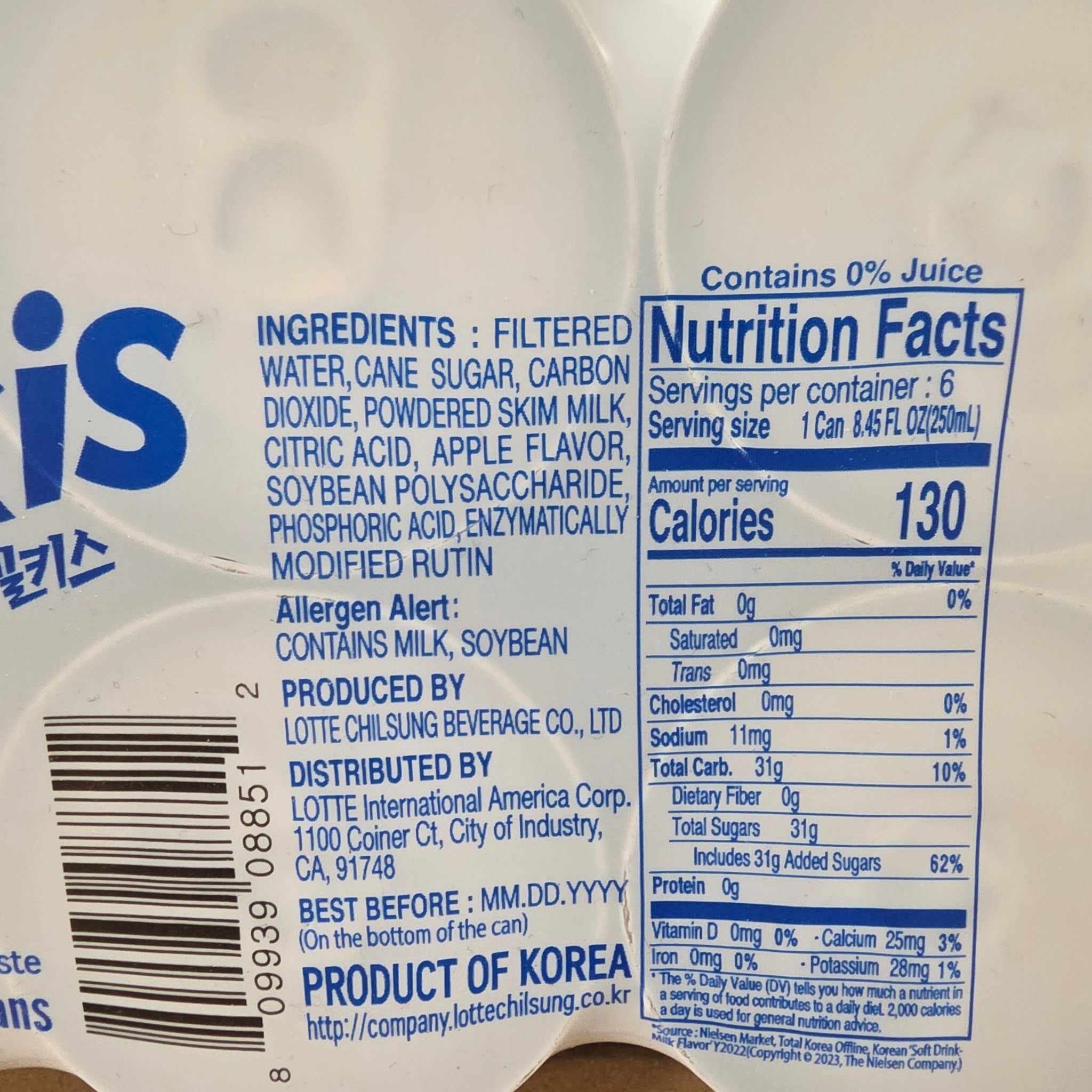 Lotte Milkis Apple Carbonated Drink 8.45 fl oz (250 ml) Pack of 6