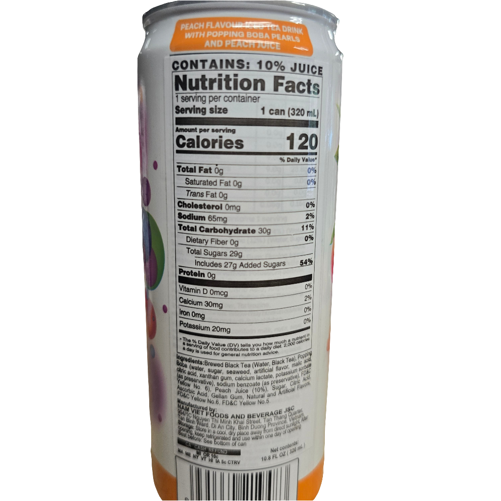 Vinut Popping Boba Bubble Tea Peach 320 ml